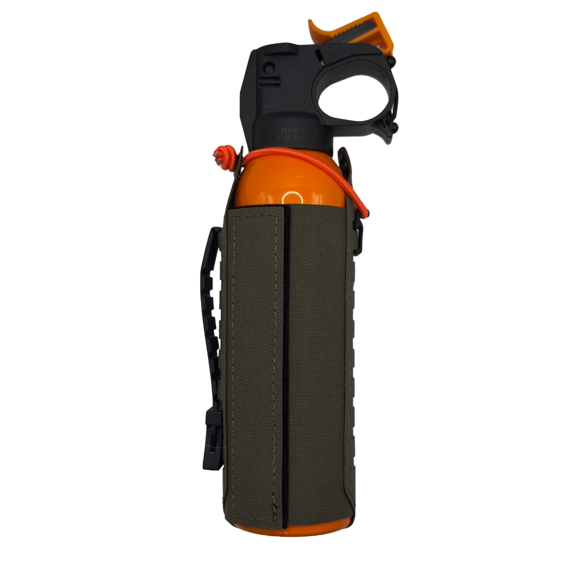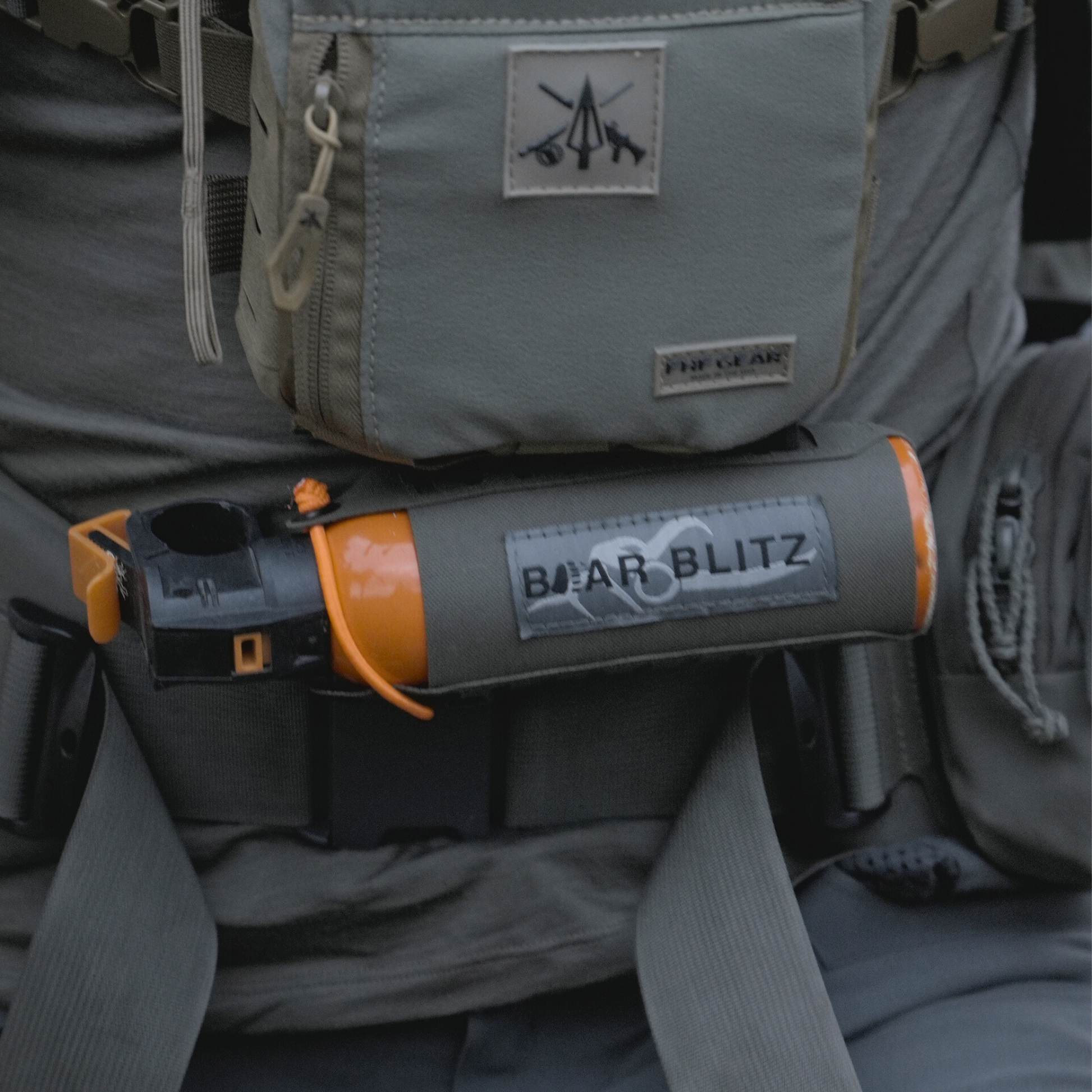 With the Bear Blitz bear spray holster, you can enjoy lightning fast access to your bear spray. Our holster is designed with a patent pending tensioning system and plastic MOLLE clip which allows the user to attach their bear spray to belts, backpacks, MOLLE, straps, loops, and various other attachment points. It is also designed to accommodate different sizes of bear spray from 7.9 to 10.2 oz canisters at a feather light weight of 1.2 oz.