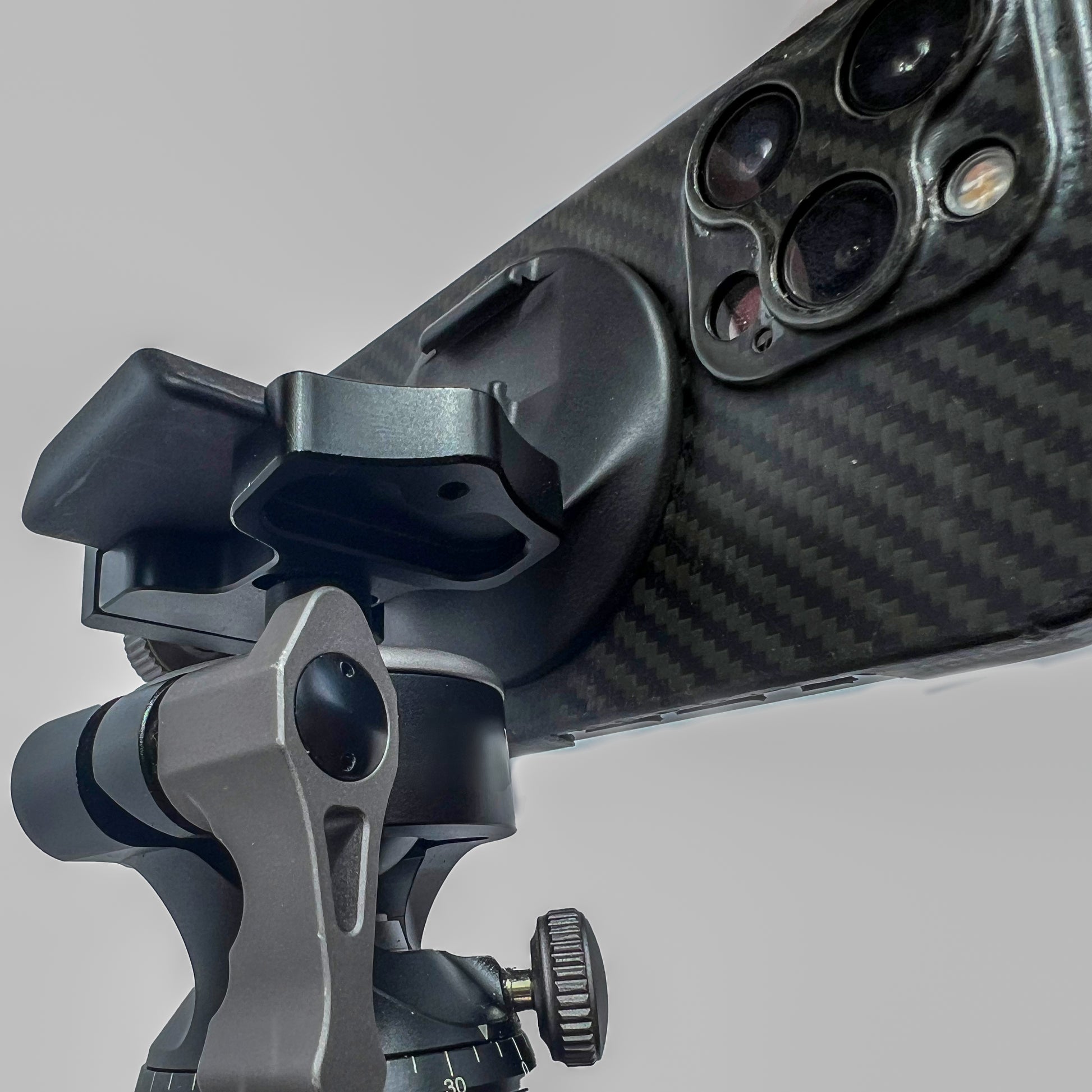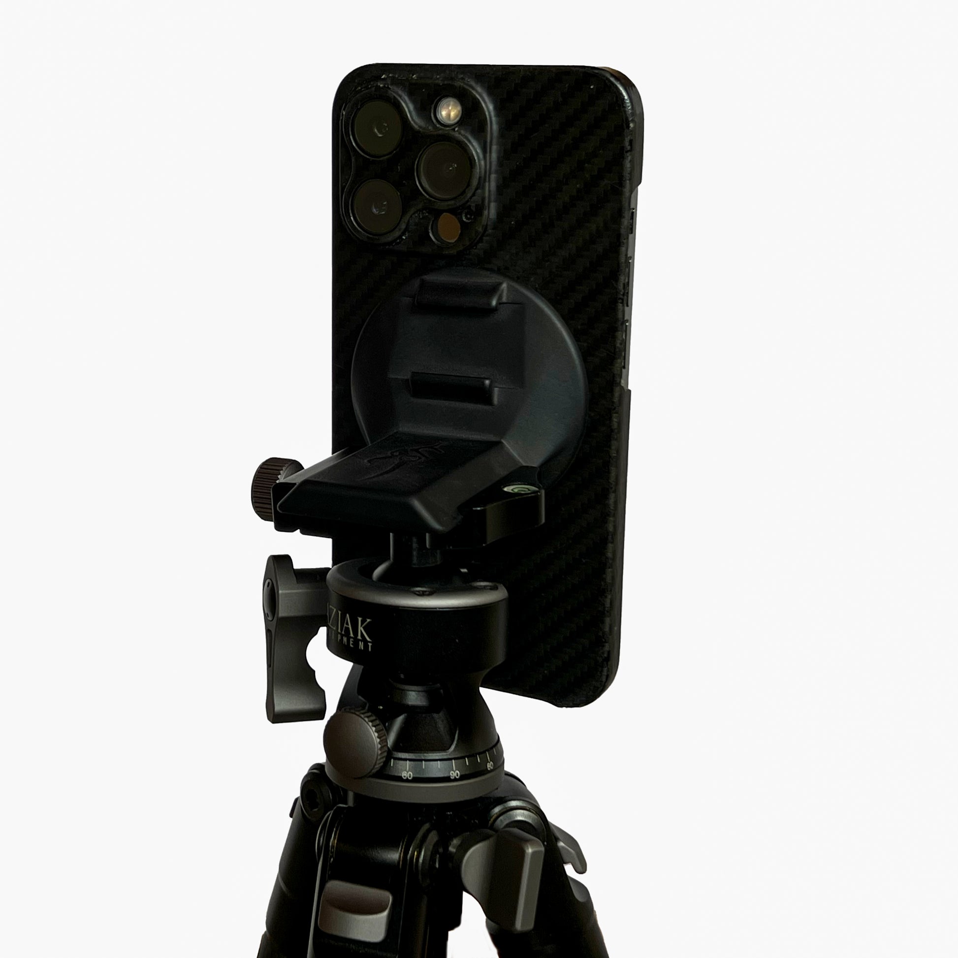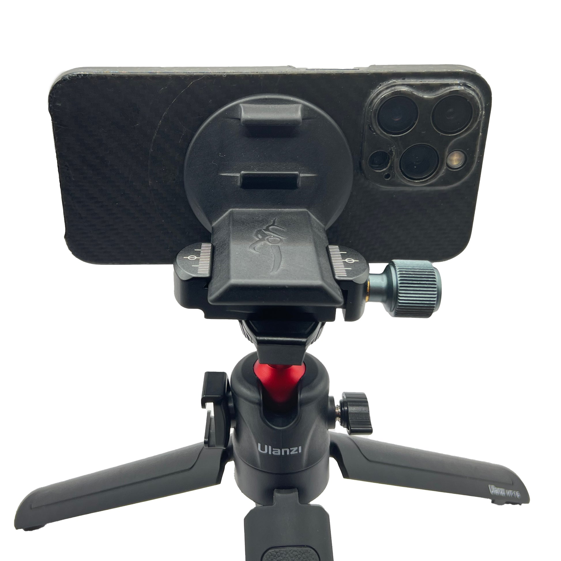 An ultra lightweight and sturdy magnetic phone holder that utilizes MagSafe magnetic technology and Arca Swiss to securely hold your phone in place.