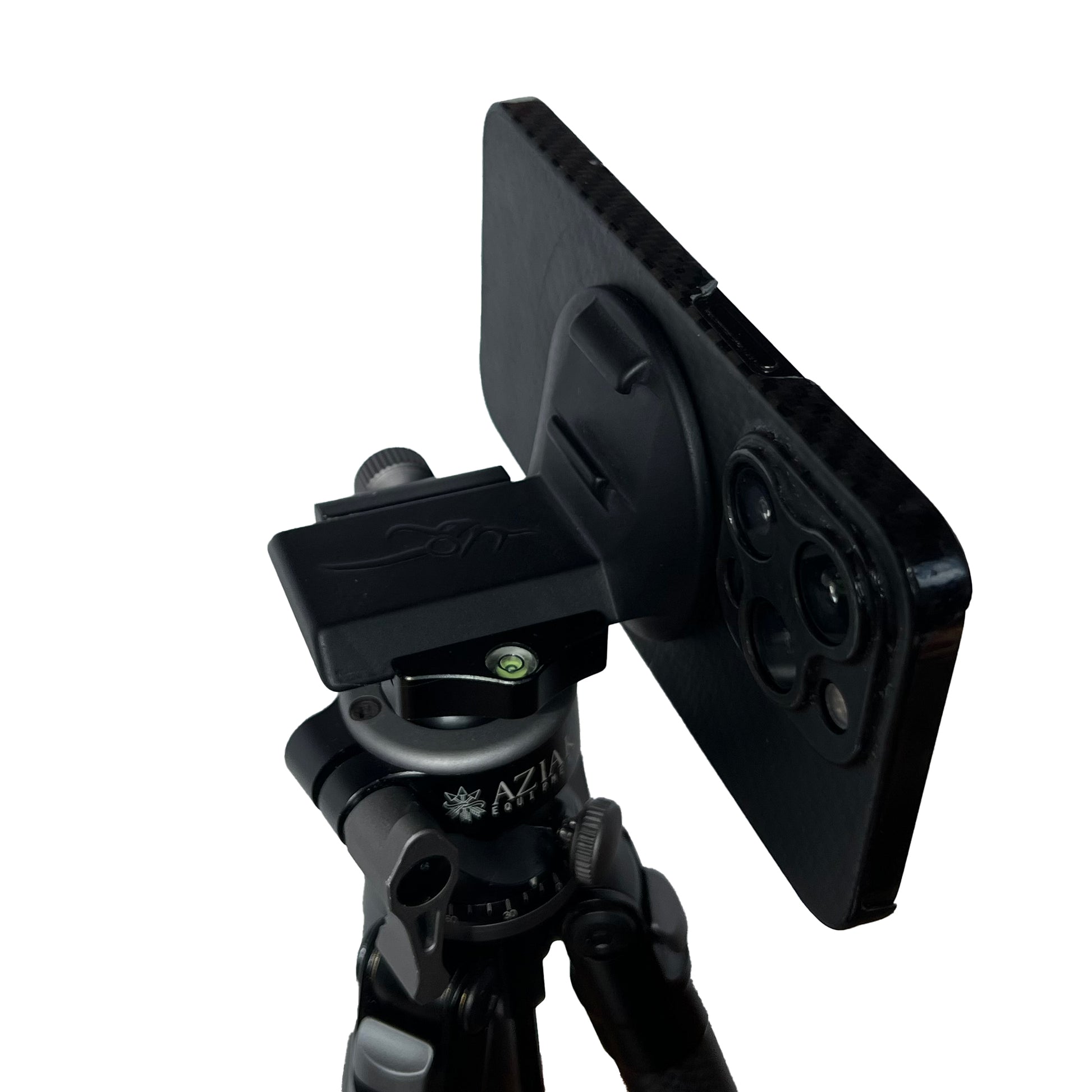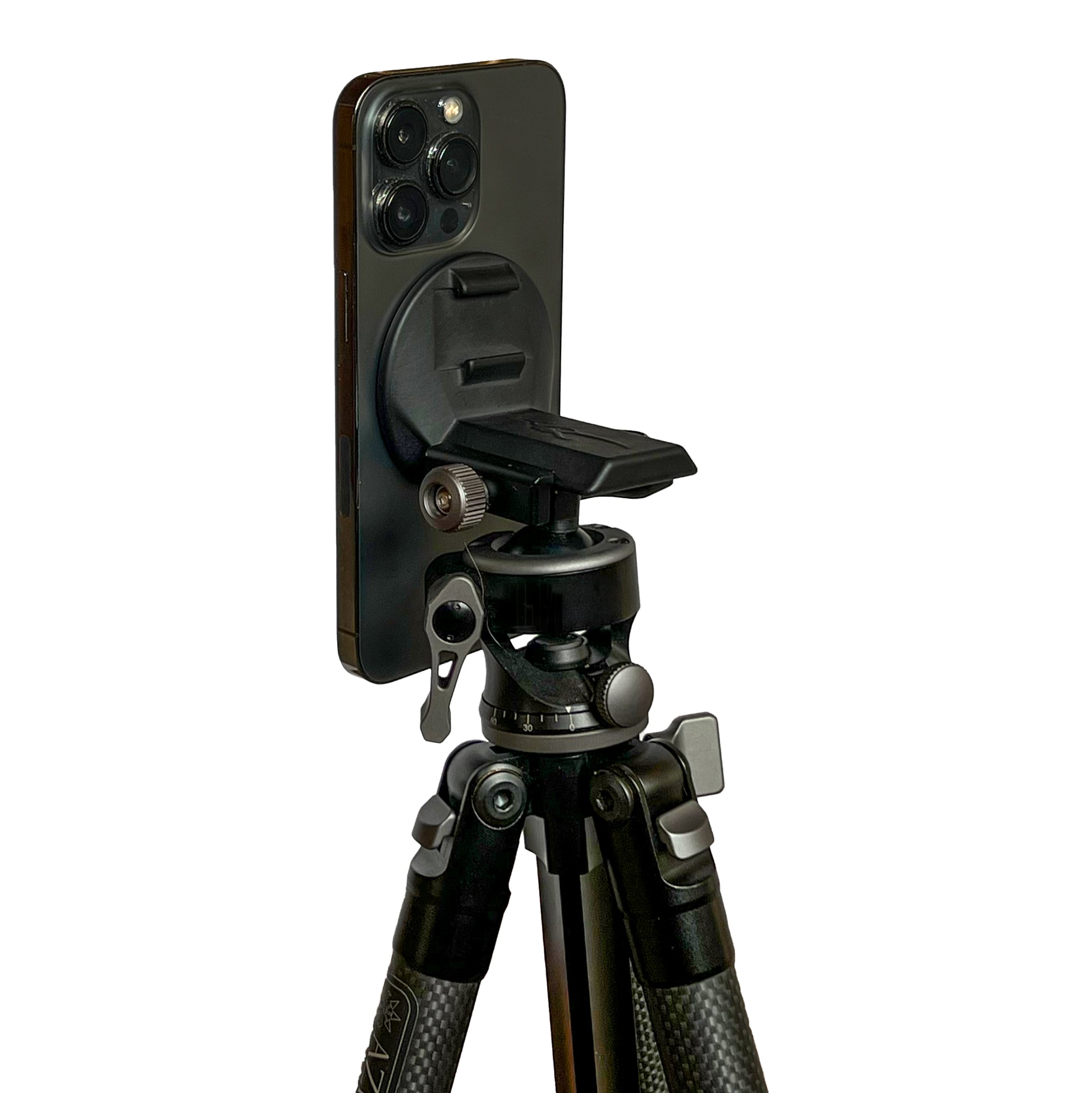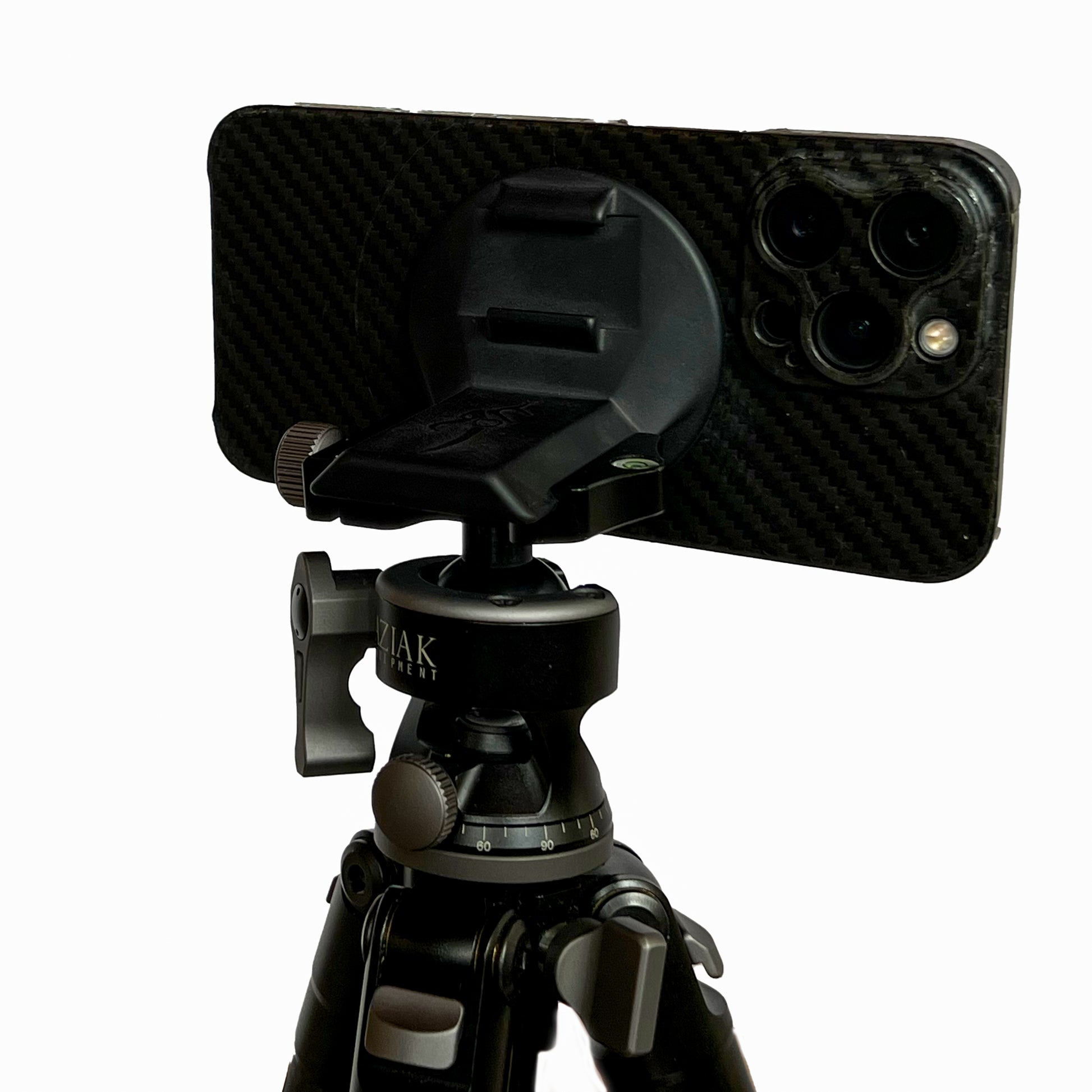 An ultra lightweight and sturdy magnetic phone holder that utilizes MagSafe magnetic technology and Arca Swiss to securely hold your phone in place.
